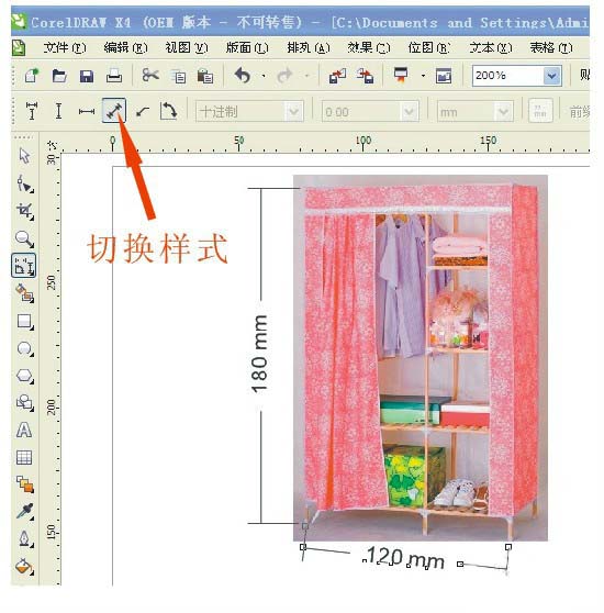 1、首先我們把需要標注尺寸的圖片拖入CDR中來,選擇量度工具
