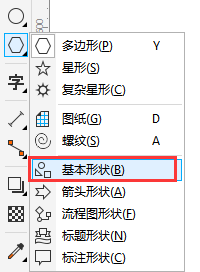 1. 在工具箱中單擊“多邊形工具”,(點開右下的小黑三角,還有其他工具)選擇“基本形狀工具”,如圖。
