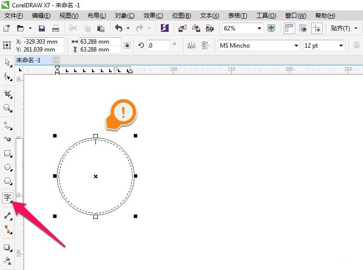 1、那你想對一段文字進行造型的話。首選畫一個特定的矢量圖形,比如:矩形,圓形等。這里用圓形做實例。如圖