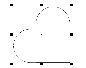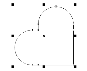 4. 然后框選住中間的兩個節點,按住Ctrl鍵,拖動鼠標左鍵垂直向上拖動,如下圖(左)所示。到適當位置,松開鼠標,確定圖形,一個心形的圖形框架就出來了,如下圖(右)所示。