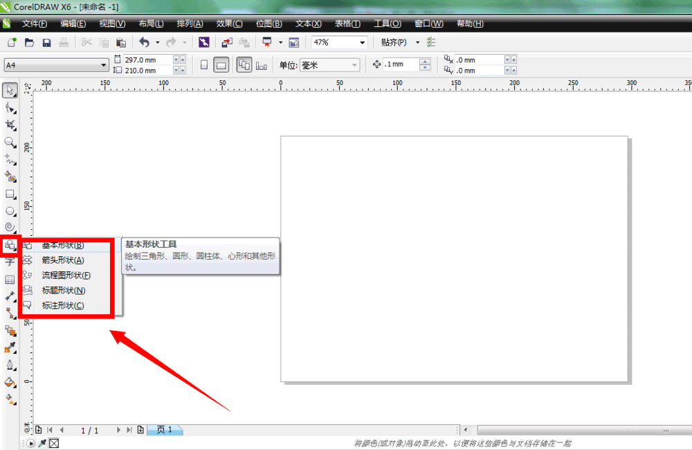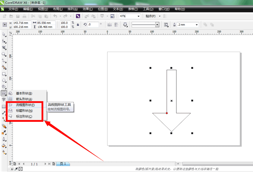 9、在“基本形狀工具”里面還提供了流程圖形狀、標題形狀等等選項,大家可以根據(jù)自己的需要來使用cdr軟件親自繪制測試看看。