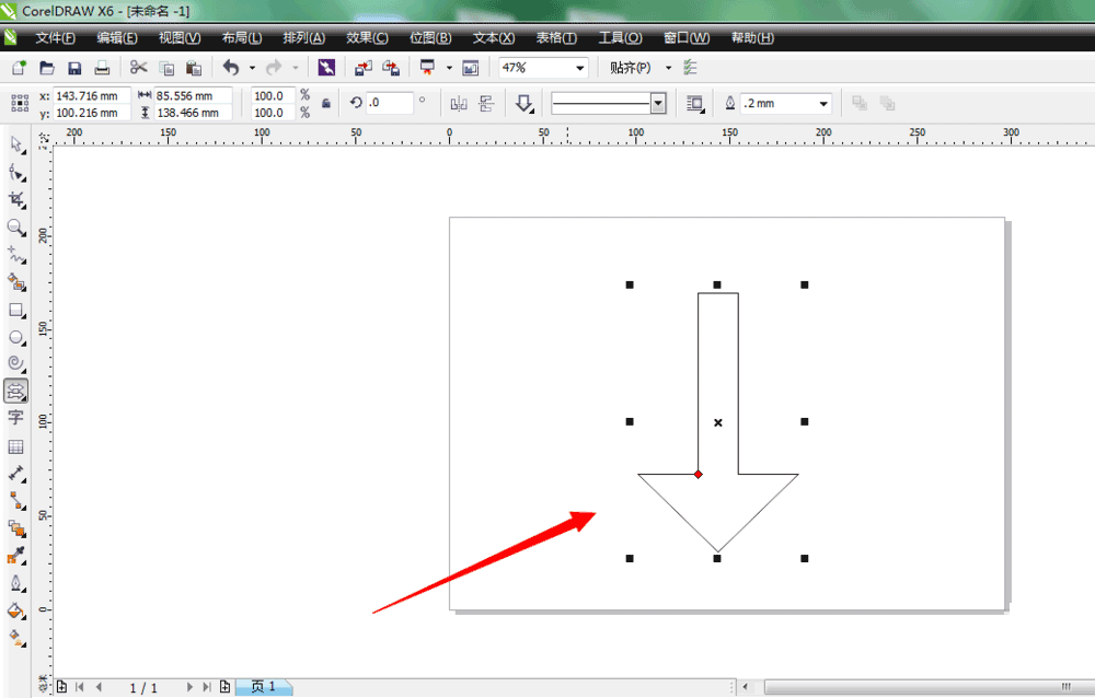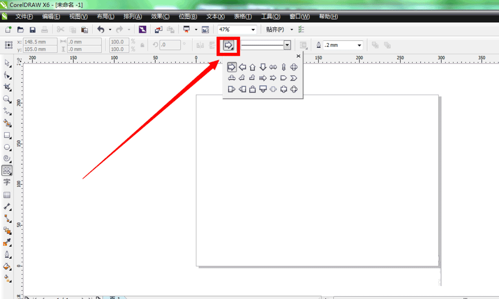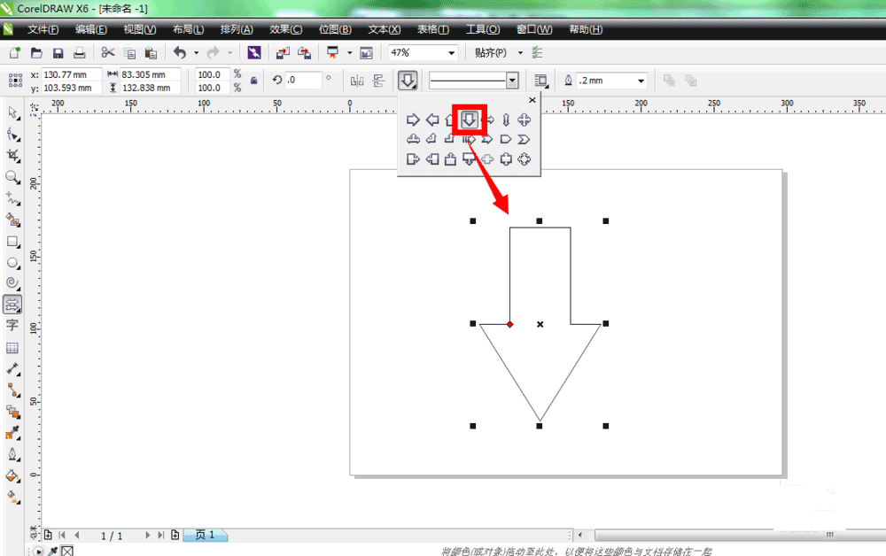 6、任意在箭頭面板里單擊選中其中一個,再在頁面上拖拉出箭頭的圖形即可