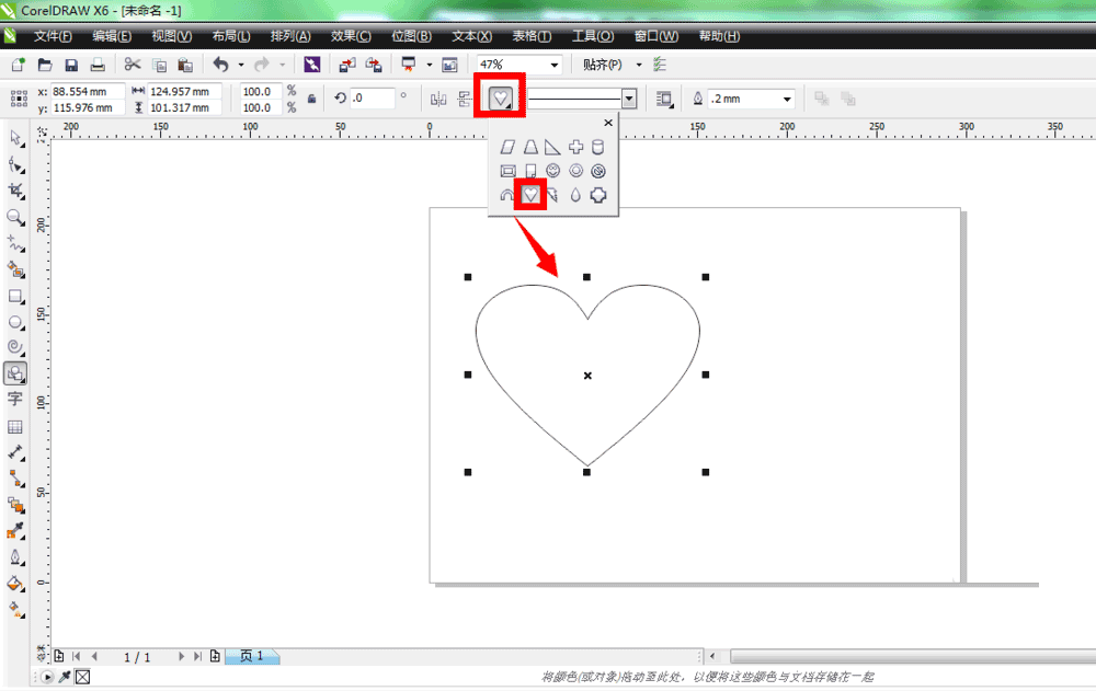 4、假設我們現(xiàn)在選中一個心形形狀,在空白的頁面上直接拖拉,即可繪制出一個心形