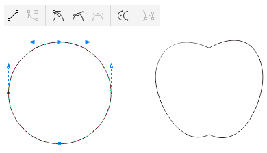 蘋果的外形很簡單,這里使用"橢圓工具"繪制正圓,進行轉曲調整,將圓滑對稱節點裝換為尖突節點,在曲線路徑中創建銳角效果,如圖所示。