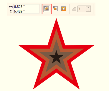 到中心:該按鈕創建由圖形邊緣到中心放射的輪廓圖效果。此時不能設定輪廓圖步數,輪廓圖根據所設置的輪廓圖偏移量進行自動調整。