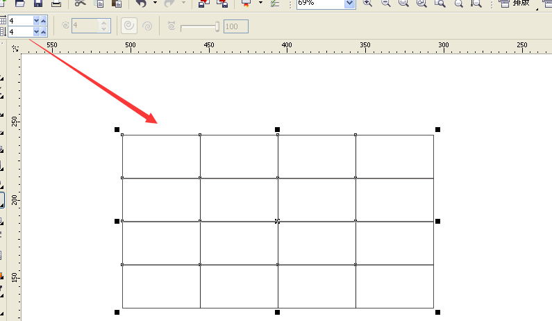 2、設(shè)置行和列的參數(shù),如左圖,然后在工作區(qū)域按照鼠標(biāo)左鍵,建立圖紙。如右圖,