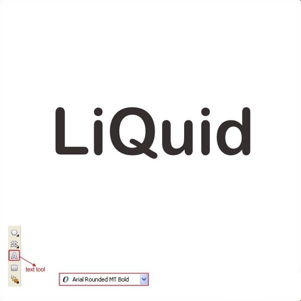 3、創(chuàng)建文本液。現(xiàn)在,我們有我們的工作組,我們將開始創(chuàng)建液體的文字,轉(zhuǎn)到“文本工具”選擇任何類型的,你喜歡,但在這種情況下,我使用基本的“宋體圓形”字體的字體。