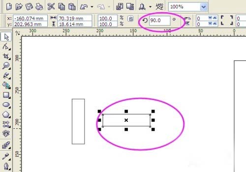 五、選擇一個矩形,將其旋轉為90度。如圖: