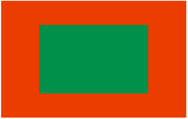 選擇矩形工具繪制兩個大小不同的矩形,較大的圖形放到下面,較小的放到上面(大的圖形填充紅色,小的圖形填充為綠色),這樣做的目的是為了能清楚的看到上面的圖形的透明度是怎么變換的。