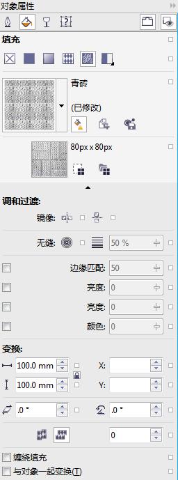 另外,執行“窗口”>“泊塢窗”>“對象屬性”命令,在打開的“對象屬性泊塢窗”中選擇“填充”>“位圖圖案填充”一樣可以對選中的對象進行位圖圖案填充的編輯。