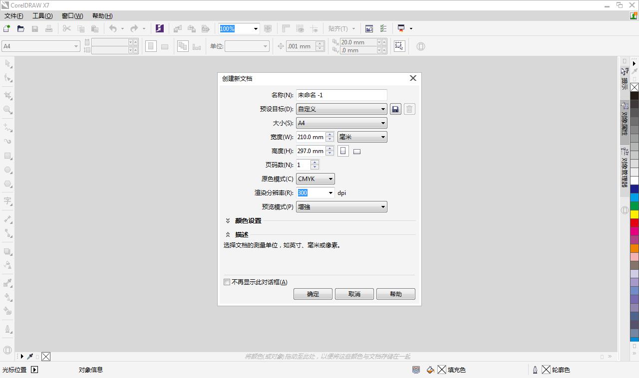 點擊確定后,下次啟動CorelDRAW時,即會顯示創建新文檔對話框。