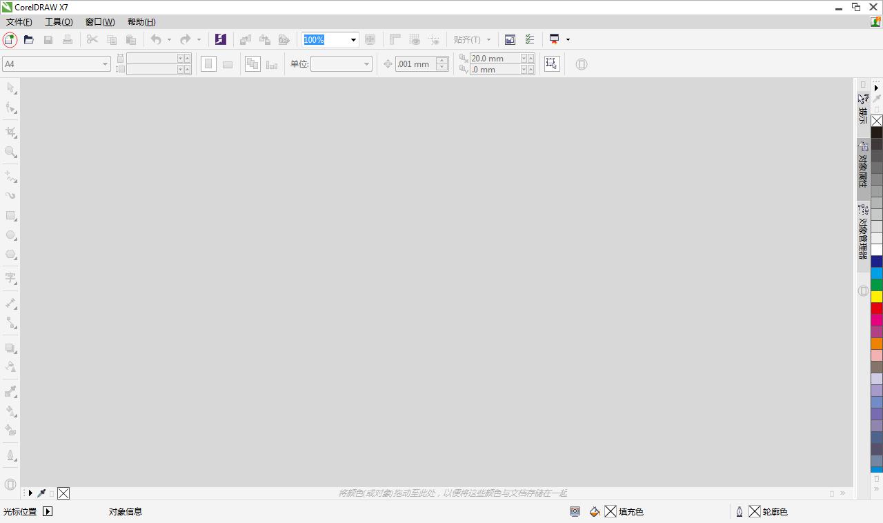 這樣,下次啟動CorelDRAW時,界面就沒有內容,一片灰色,您可以點擊“新建按鈕”來創建一個空白頁面。