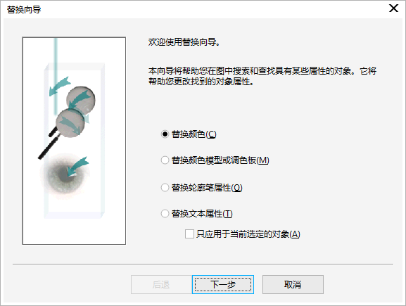 例如,可以將特定顏色的所有對(duì)象填充替換為另一種顏色的填充。也可以替換顏色模型和調(diào)色板、輪廓屬性和文本屬性(例如字體和字體大小)。