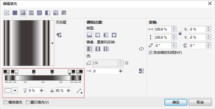 在“編輯填充”對話框中設(shè)置屬性:在漸變條上任一位置雙擊即可添加一個節(jié)點(矩形加三角形的箭頭形狀),此時,您可以在漸變條下面的節(jié)點顏色下拉框中選擇節(jié)點顏色,您可以根據(jù)實際情況添加多個節(jié)點,如下圖。(您也可以根據(jù)自己的想法去另行設(shè)置以下屬性)