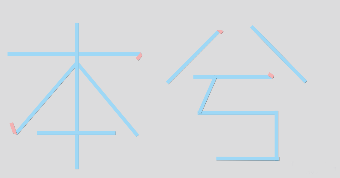 添加陰影以后,我們還需要調節筆畫的疊放次序,我這里是讓筆畫上下錯開的,比如本字的豎,他是放在第一橫和撇、捺的上面的,然后最后的橫就放在豎的上面。