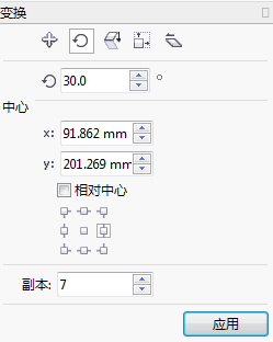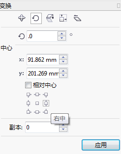 2. 在“旋轉”泊塢窗單擊新的旋轉基點,比如為“右中”。