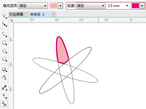 3. 從“輪廓選項”下拉列表中選擇“指定”,選擇右側(cè)的輪廓寬度,并單擊右側(cè)的“輪廓色”色樣,選擇一種顏色,在想要對象填充的區(qū)域單擊,即可填充該區(qū)域輪廓屬性了。