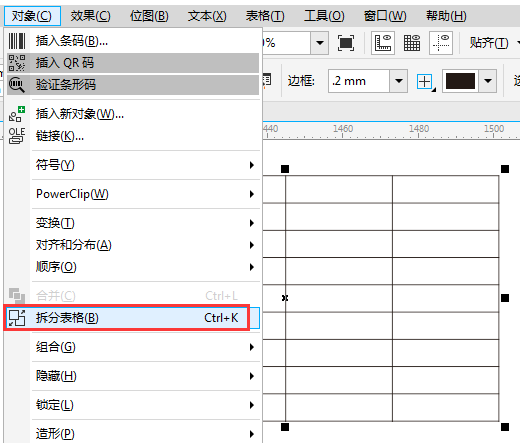 2. 在選中網格的狀態下,執行“對象>拆分表格”命令(快捷鍵‘Ctrl+K’)。