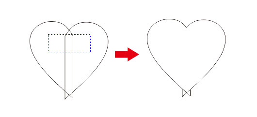 使用橡皮擦功能前先要選擇對象。下圖紅色心形中間的白色區域就是橡皮擦移除的。