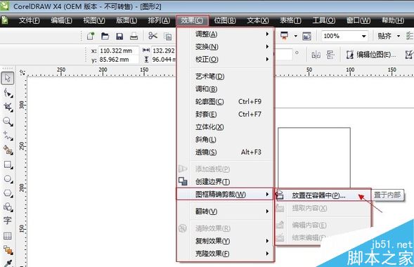 CorelDRAW X8與X4版本相比,“圖框精確剪裁”不但名稱變了,位置也做了調(diào)整,如果您是從CDR X4一下子升級(jí)為CDR X8,那么就要注意這個(gè)問(wèn)題了。如圖所示為CorelDRAW X4版本截圖。