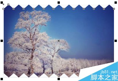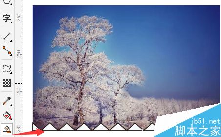 4. 按Shift鍵同時選中圖片和鋸齒線條,按下鍵盤上的“B和C”鍵,做底端對齊和垂直居中對齊,如下圖所示。