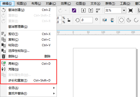 2. “編輯”菜單欄中有提供多種復制對象方法及對象編輯功能。