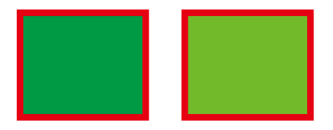 使用“矩形工具”繪制矩形(以矩形為例,您也可以使用任何形狀的圖形以操作實驗),鼠標左鍵單擊調色板,將矩形填充顏色,右鍵單擊調色板,設置輪廓線顏色。或者直接拖動色盤上的色塊到矩形上以作填充或輪廓描邊使用,這里選擇填充填充為“紅”,描邊為“綠”。