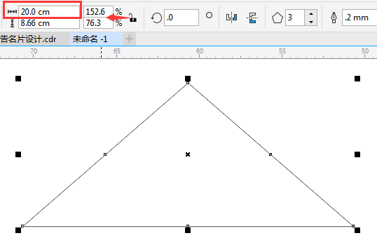 首先,設置繪圖單位為厘米,鼠標右鍵單擊界面標尺,選擇“標尺設置”更改標尺單位為cm。相關參考請參閱:CorelDRAW X8修改標尺的單位。然后選擇“多邊形工具”設置變數為3,按住Ctrl鍵畫任意大小等邊三角形,然后鎖定比率,在“對象大小”中的寬度框中輸入“10”即可,在高度框中會同時顯示高度值。(這里需要注意,無論是先按Ctrl鍵再繪制圖形,還是先繪制圖形再按Ctrl鍵都能得到一個正三角形,只是,在松開鼠標左鍵之后再松開Ctrl鍵才能確保是正三角形)。