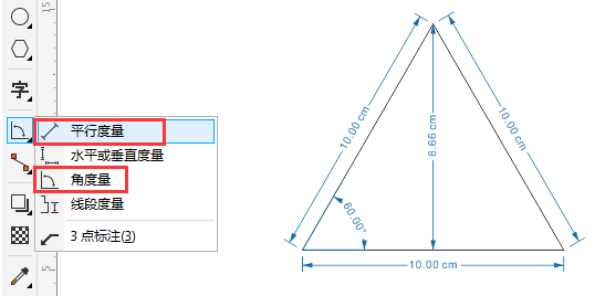 現在,可以利用“平行度量”工具測量邊長、高度和角度,數值與屬性欄數值相同。