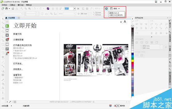 1. 打開CorelDRAW軟件后,點擊標準工具欄位置中的“選項”按鈕(快捷鍵Ctrl+J),或執(zhí)行菜單欄中“工具>選項”命令,如圖所示。