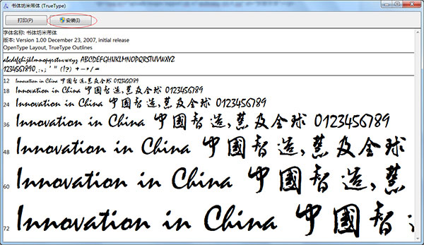 方法三:下載我們想要的字體,解壓壓縮包,雙擊打開下載好的字體,彈出的對話框中單擊"安裝"按鈕即可。