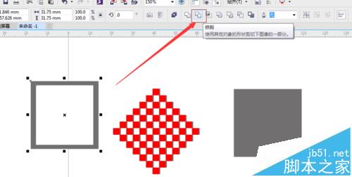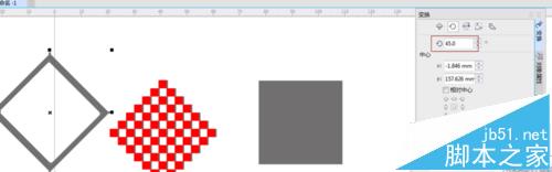 6、繪制一個正方形,將矩形填充步驟5的70%的灰色。復制一份,備份。將其中一個,選中復制(按住shift鍵點右鍵)縮小,填充白色。框選兩個,將其修剪。將里面那個刪除,就出現邊框的效果了。按alt+F8旋轉-->旋轉45°-->運用