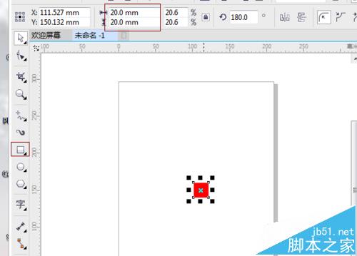 2、按住ctrl鍵,繪制一個正方形。長寬20,填充紅色,去掉邊框。
