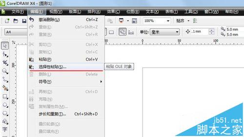 2、在coreldRAW中選擇 編輯-選擇性粘貼