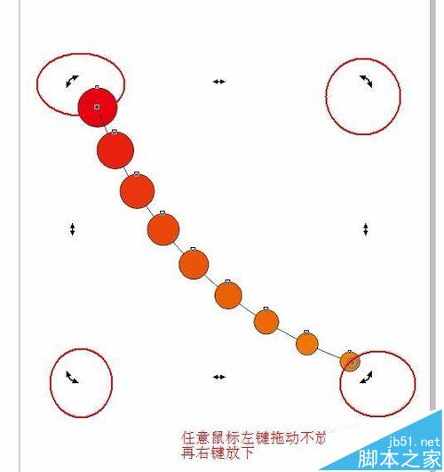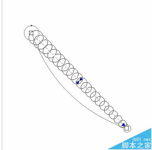 4、用調和工具從最項端的圓拉到最末端的圓上(也可以從最末端的圓拉到最頂羰的圓上,最最最重要的是圓,不是弧線上拉,哈哈,其實這個一開始的時候,圓和弧線可以是兩上單獨的個體,沒必要一定放在弧線上,但是怕有些剛入門的不懂這一陀那一陀的,所以就放一起啦)