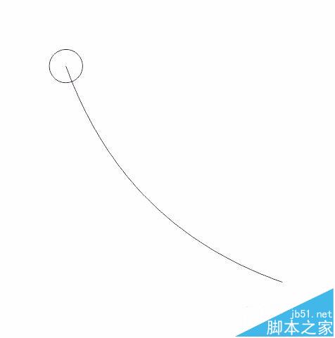 3、在弧線的最末端用隨圓工具畫出一個圓(可比最頂端的圓大,也可以小,也可以是隨圓或其他形狀,我這里是一個1cm的圓)