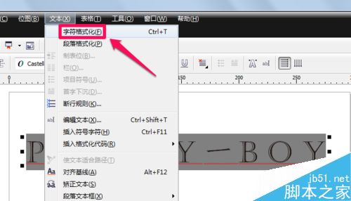 2、然后按快捷鍵Ctrl+T打開(kāi)字符格式化,記不住快捷鍵的朋友可以在菜單欄中點(diǎn)擊文本-字符格式化。