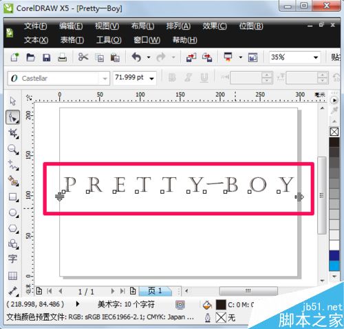 3、這時(shí)大家就可以看到cdr中的字符間距已經(jīng)調(diào)大了許多。