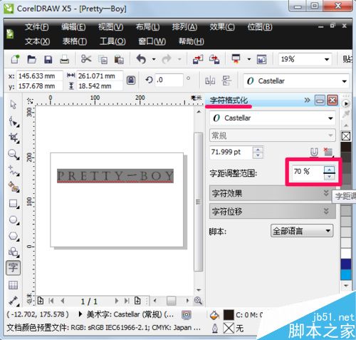 3、在字距調(diào)整范圍中調(diào)節(jié)百分比就可以調(diào)整coreldraw中的字符間距了。