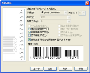 6、保持默認參數不變,點擊‘完成’按鈕,在工作界面就會添加剛才建立的條形碼
