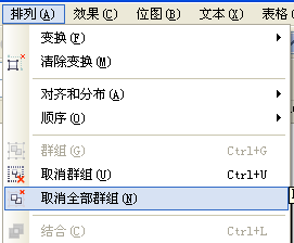 11、執行”排列--取消全部群組“菜單命令取消全部組合