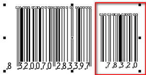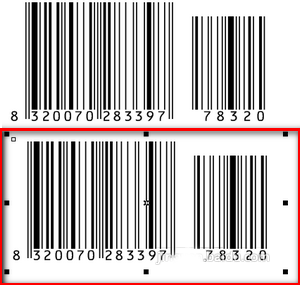13、拖動條形碼邊上的控制柄改變條形碼大小,調整完后將小的條形碼刪掉,就是下圖紅框中的區域