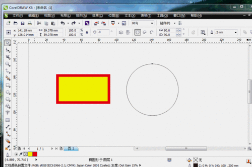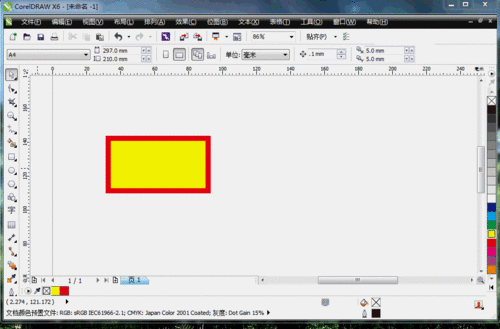 1、打開coreldraw畫一個如下的圖形,邊框加粗——選中圖形——點粗線,邊框顏色選紅色——選中圖形——右鍵點紅色,填充黃色——選中圖形——左鍵點黃色