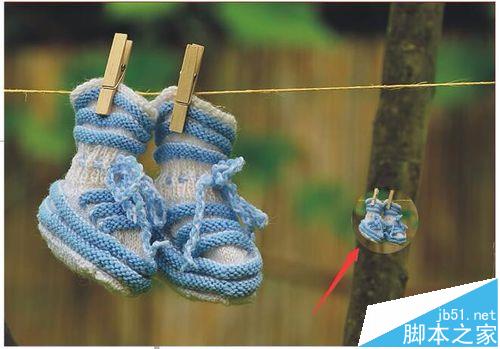 4、下面測試一下:將一張圖放在被挖洞的圖片下面,效果就出來了。