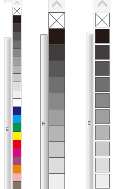 3、下圖所示依次為調(diào)色板默認(rèn)設(shè)置、勾選大色樣設(shè)置和勾選大色樣以及寬邊框設(shè)置,此選項(xiàng)可以自己嘗試,看哪一種顯示更符合操作體驗(yàn)。