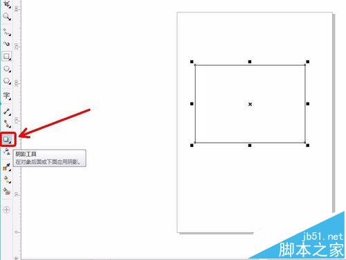 2、選擇左側工具欄矩形工具,在畫布中畫一個矩形框。然后點擊陰影工具,選擇陰影的起始位置,如矩形右邊。然后拖動鼠標向某一方向建立陰影。