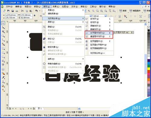 4、全選文字,選擇“排列”——“對齊和分布”——“水平居中對齊和垂直居中對象”,如圖,