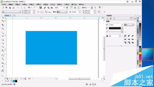 1、打開CorelDRAW軟件,新建一個空白工作區。使用矩形工具,畫出一個矩形,并且填充上顏色。
