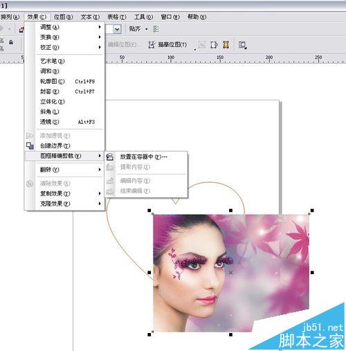3、點擊菜單欄效果,圖框精確裁剪,放置到容器中。