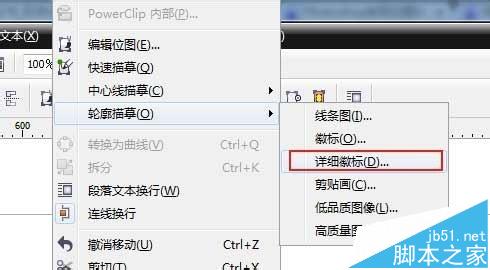 2、在位圖上單擊右鍵,選擇“輪廓描臨”->"詳細徽標"